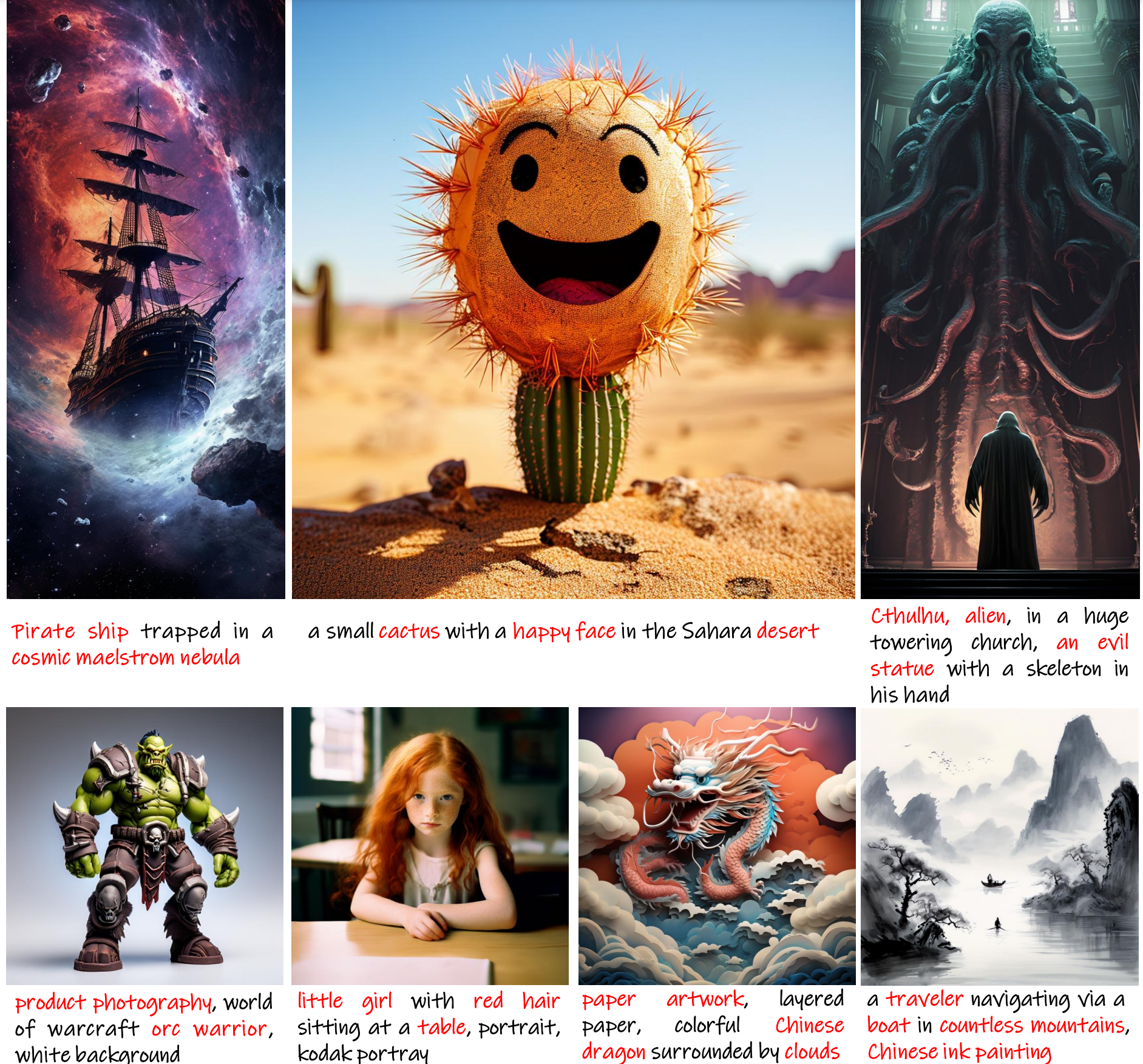 사실 논문만 봤을 때는 DiT를 T2I 태스크에 적용하면서 몇몇 파라미터들을 효율화 한 정도로 보이지만, 보여주는 결과들이 굉장히 디테일이 잘 재현된 것 같다.